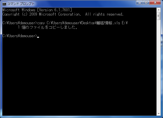 コマンドプロンプトは、その名の通りコマンドによってPCを操作する方法です。マウスなどによる操作を介さずにファイル操作等が行えるため、OSのGUI操作のみを監視し記録しているログ管理システムでは記録が残りません。